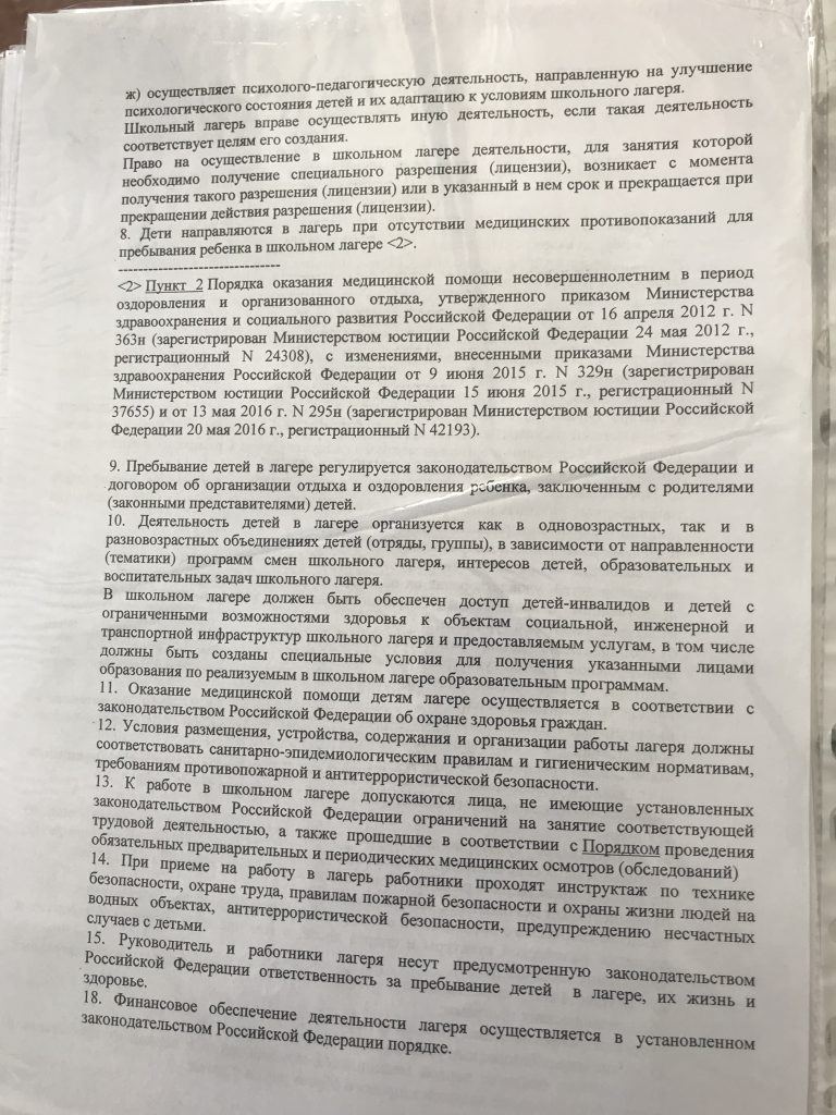 - Приказ Министерства просвещения Российской Федерации от 23 августа 2018 г. №6 «Об утверждении примерной формы договора об организации отдыха и оздоровления ребенка»