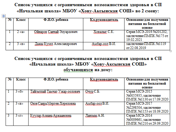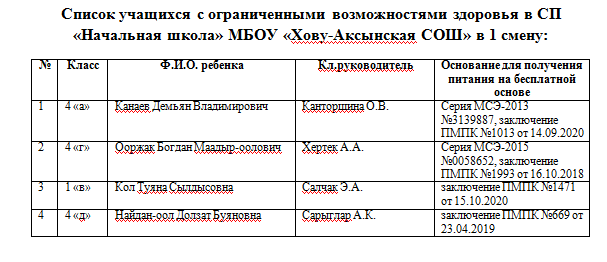 СП "Начальная школа" МБОУ "Хову-Аксынская СОШ"
