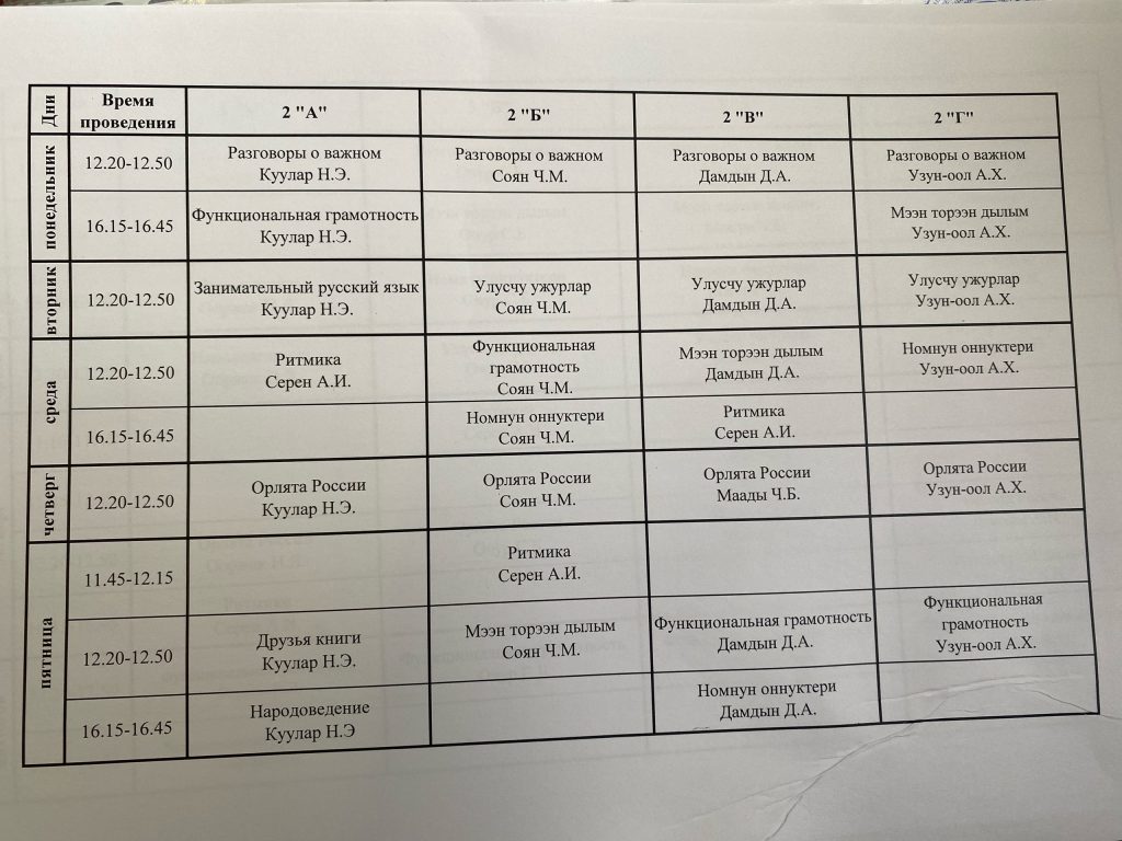 Расписание 2-х классов