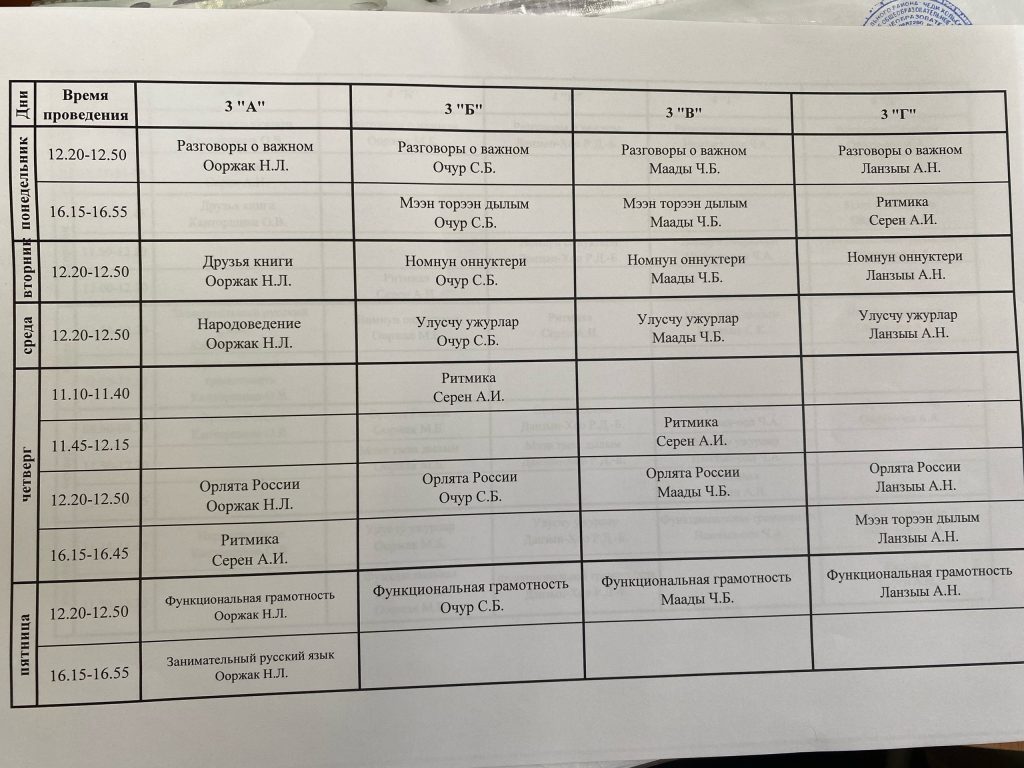 Расписание 3-х классов