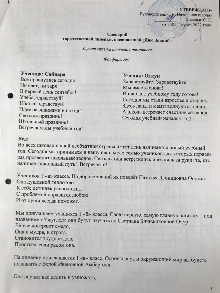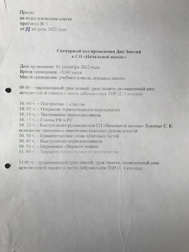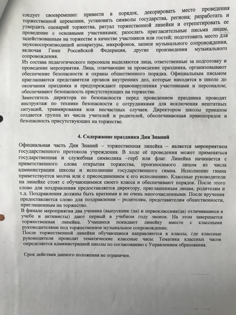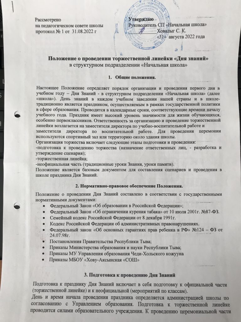 Приказ «О проведении Дня Знаний»