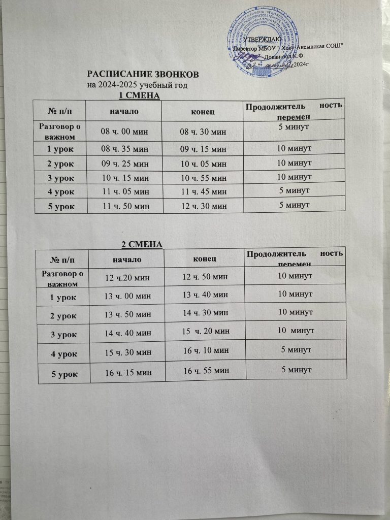 Расписание звонков