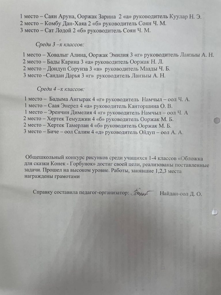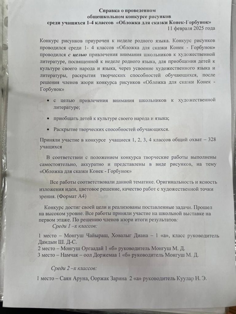 Справка о проведенном общешкольном конкурсе рисунков среди учащихся 1-4 классов «Обложка для сказки Конек-Горбунок»