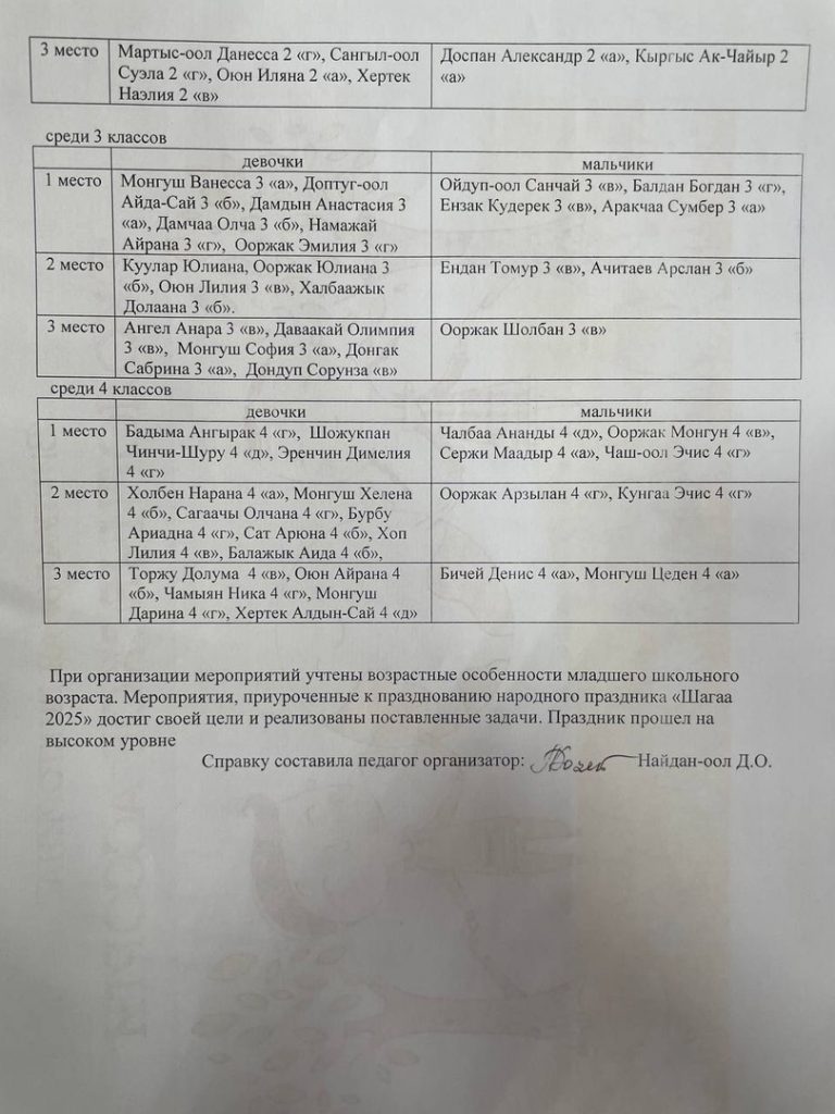 Справка о проведенных мероприятий, приуроченных к празднованию народного праздника «Шагаа-2025»