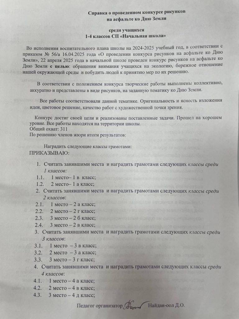 Справка о проведенном конкурсе рисунков на асфальте ко Дню Земли
